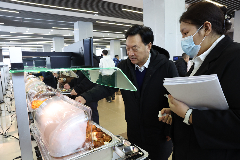 为切实筑牢校园食品安全防线,全面提升智慧食堂服务质量,近日,学院领导深入新投入运行的南校区智慧食堂开展实地调研,详细了解食堂运行现状,精准部署后续服务提升工作。总务处及相关职能部门负责人陪同调研。